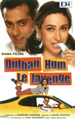 ![]() A new recipe from Bollywood: Take the plot of "Dilwale Dulhaniya Le Jayenge" and blend it quickly with the plot of "Hero No. 1" ("Bawaarchi" and "Khubsoorat" may be substituted). Add a cup of Yash Chopra´s Switzerland and a heaping tablespoon of Karan Johar color. Garnish with David Dhawan comedy and serve. Yes, my friends, this is how I believe Mr. Dhawan conceived his latest release - "Dulhan Hum Le Jayenge". There is really nothing new to offer here, but still - the movie manages to be very, very entertaining. And it is the stylized comedy of Mr. Dhawan that carries the film and manages to hold the audience´s attention throughout a movie that we know in the back of our minds we have seen before (more than once at that). The story revolves around the orphaned Sapna (Karisma Kapoor), a sheltered Rapunzel who is forced to cater to the needs of her three eccentric uncles: one who is gay (Anupam Kher); one is a pehelwan (Om Puri), and one is dharmic (Paresh Rawal). These three uncles insult a wealthy businessman (Kadar Khan) when he comes with a marriage proposal for his son, Raja (Salman Khan). Raja´s father then makes Raja promise to avenge this insult by winning Sapna´s heart. Meanwhile, Sapna elopes from home with the help of her gay uncle and goes on a European tour. Raj follows her - and - "Tujhe Dekha To Yeh Jaana Sanam...". Ooops!@ Wrong film.. Yes, love blossoms between the two. When they return to Mumbai, however, Raja and Sapna devise a plan to win over each of the uncle´s hearts individually by having Raja pretend to be the son-in-law they´ve always wanted.