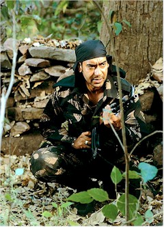 Tanishaa’s scenes distract the film from its main focus. Their love story starts just after the film kicks off with riveting sequences in the jungle. Perhaps Mani Shankar should have taken a tip from the story of “Cold Mountain” (by Charles Frazier and Anthony Minghella) where the romance begins before the war and the heroine reveals her thoughts in her letters to her departed beloved. Adopting this technique would have stopped Bobby’s character from having to take unnecessary trips home just to give Tanishaa (who plays Lachchi) a bit of screen time. Nandana Sen’s scenes are actually better as they are absorbing and dramatic.