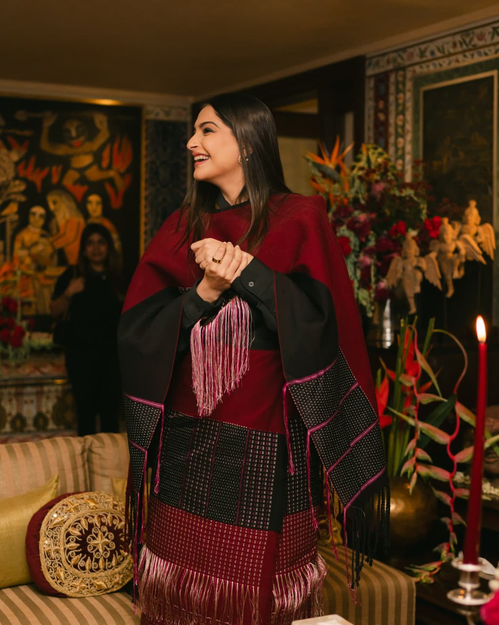 For the occasion, Sonam chose an outfit from East, designed by Manipuri designer Easternlight Zimik. The outfit, an Akha set from their Patrons Collection, is an elegant nod to India’s textile legacy.